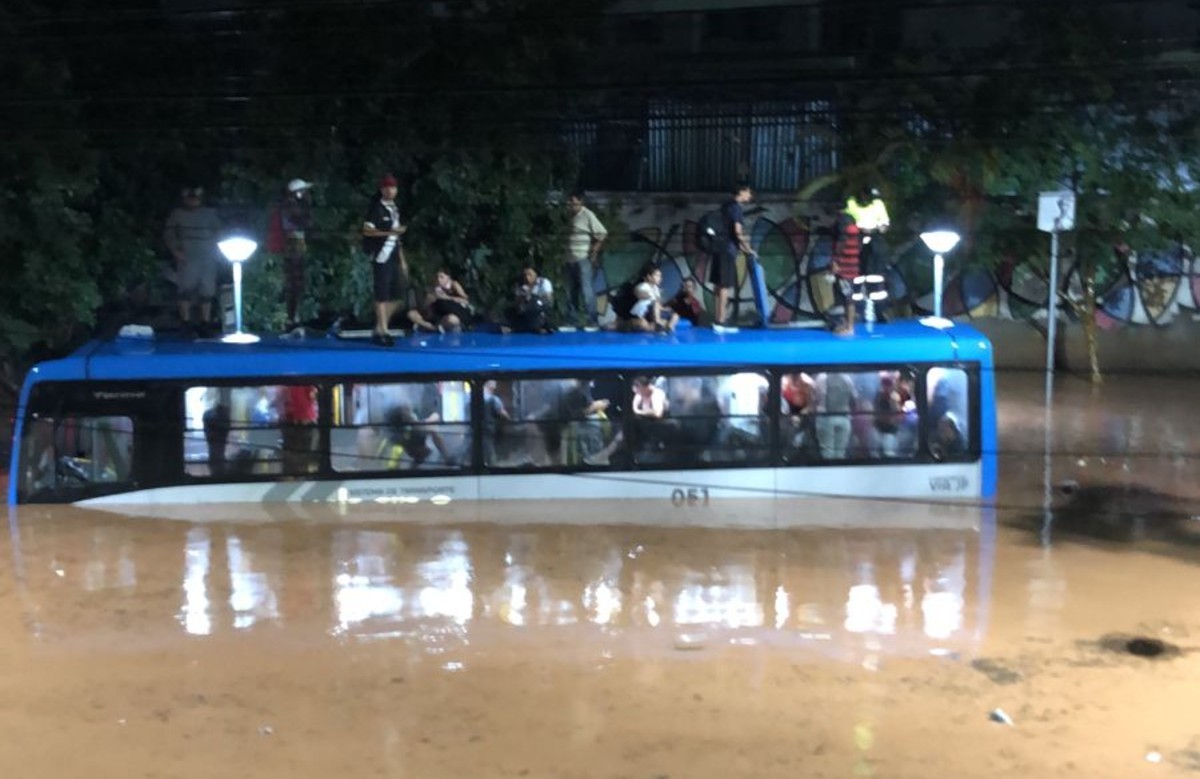 ![]() | 15/12/2025 Temporal de mais 100 milímetros deixa passageiros ilhados em teto de ônibus e abre cratera em Juiz de Fora | |