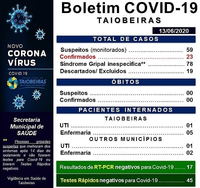 ![]() | 14/06/2020 Informe Epidemiológico de Taiobeiras MG 13/06/2020 | |
