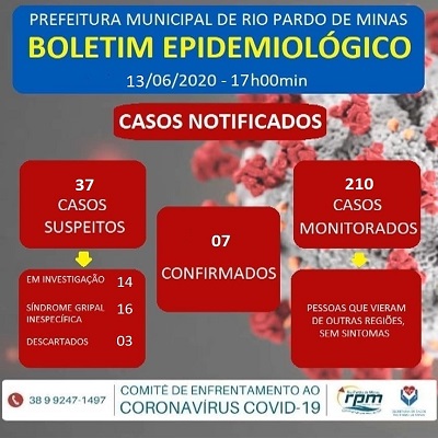 ![]() | 13/06/2020 Informe Epidemiológico de Rio Pardo de Minas 12/06/2020 | |
